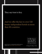 ey say trust is key. And we o er the key to over 520 luxury independent hotels in more than 80 countries. SMALL LUXURY Unlock the door to an independently minded experience. Contact your Travel Leaders Network Advisor. VISIT TLSELECTHOTELS.COM • 57